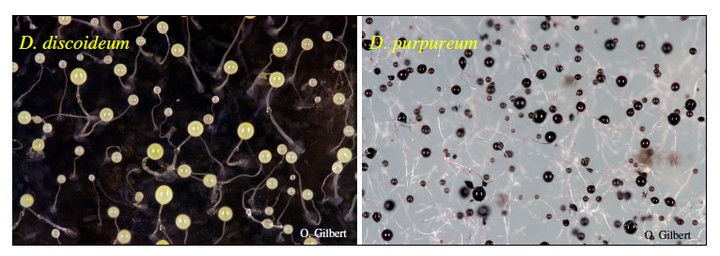 Two of the most closely related species, D. discoideum and D. purpureum, may inadvertently find themselves in the same initial aggregate, but incompatibilities due to differences in the timing of cell specialization can cause almost total segregation during early slug formation (Jack et al 2011 )
