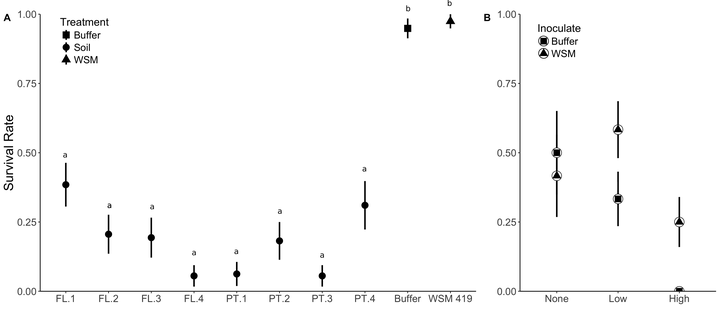 Rhizobia increase survival of M. polymorpha against antagonistic microbes